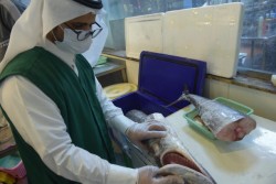 بالصور.. إتلاف 140 كجم أسماك فاسدة بالأحساء