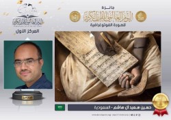 حصل حسين سعيد الهاشم على المركز الأول بجائزة اليوم العالمي للقرآن الكريم للصورة الفوتوغرافية «للفئة العامة» والتي ترعاها دار القرآن في العتبة الحسينية المقدسة بالعراق. وحملت الصورة الفائزة بالمركز الأول عنوان ”تعلم كتابة القرآن على لوحة خشبية“. الجدير بالذكر أن المرحلة النهائية للمسابقة شهدت مشاركة 54 متسابقا من دول عربية مختلفة.... |