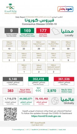 الصحة تسجل «177» إصابة جديدة بكورونا.. منها ”3“ في القطيف