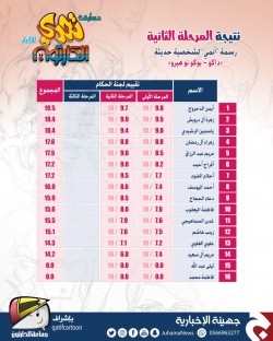 تأهل 16 متسابقا في ”تحدي الكارتون للكبار“ والتي أطلقتها صحيفة جهينة الإخبارية بإشراف جماعة الكارتون وتهدف المسابقة التي تتضمن ثلاث مراحل، إلى اكتشاف المواهب في مجال الكارتون أو الأنمي وتعريف العامة بهذا الفن. وقال الرسام ماهر عاشور إن المرحلة الأولى التي اختتمت كانت خاصة بالانمي الكلاسيك وتم اختيار شخصية الليدي أوسكار، لافتاً إلى وصول 14 عملا من 16 مشاركاً من القطيف وسيهات والإحساء والرياض. وأوضح بأن المسابقة شارك في تحكيمها ثمانية من أعضاء... |